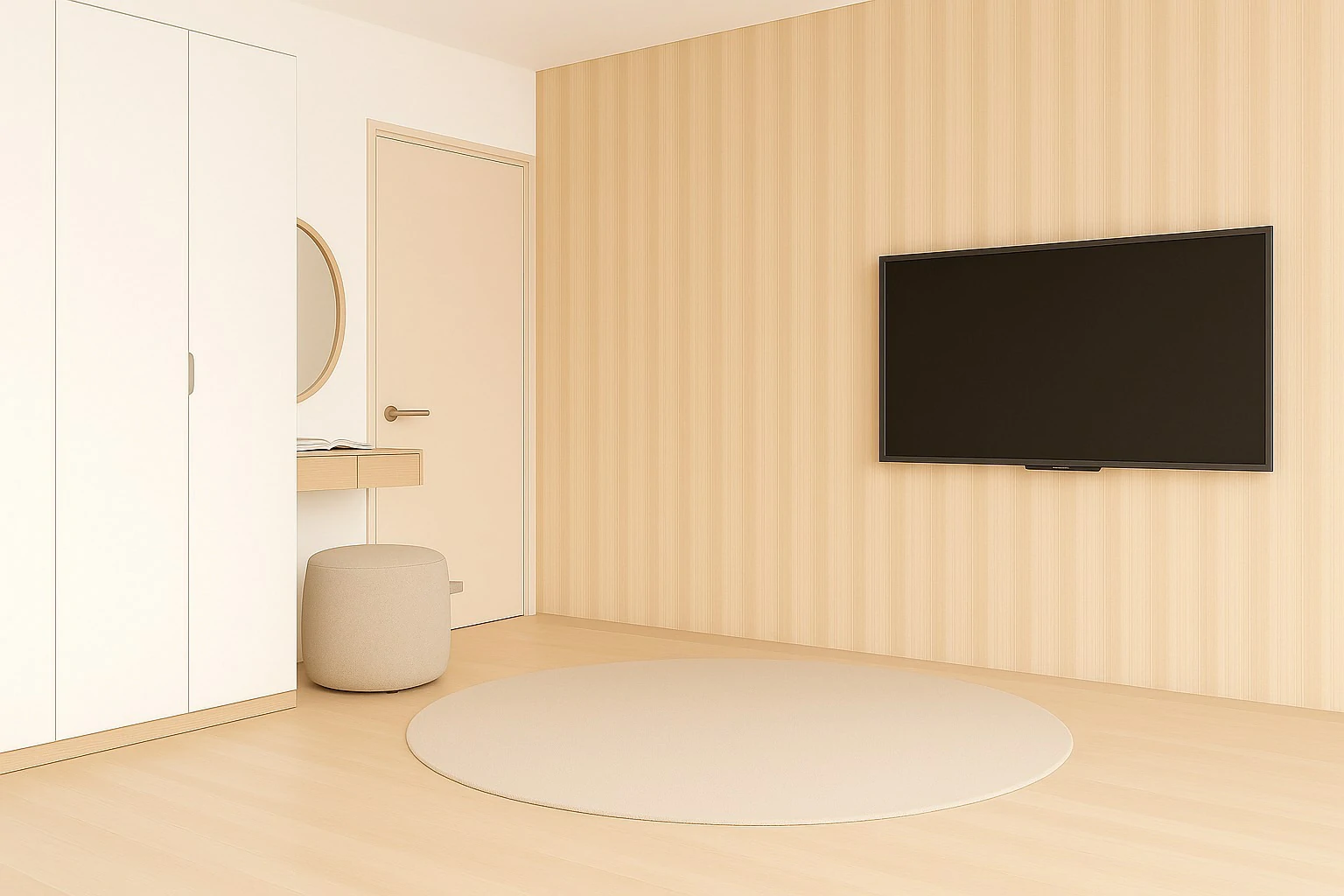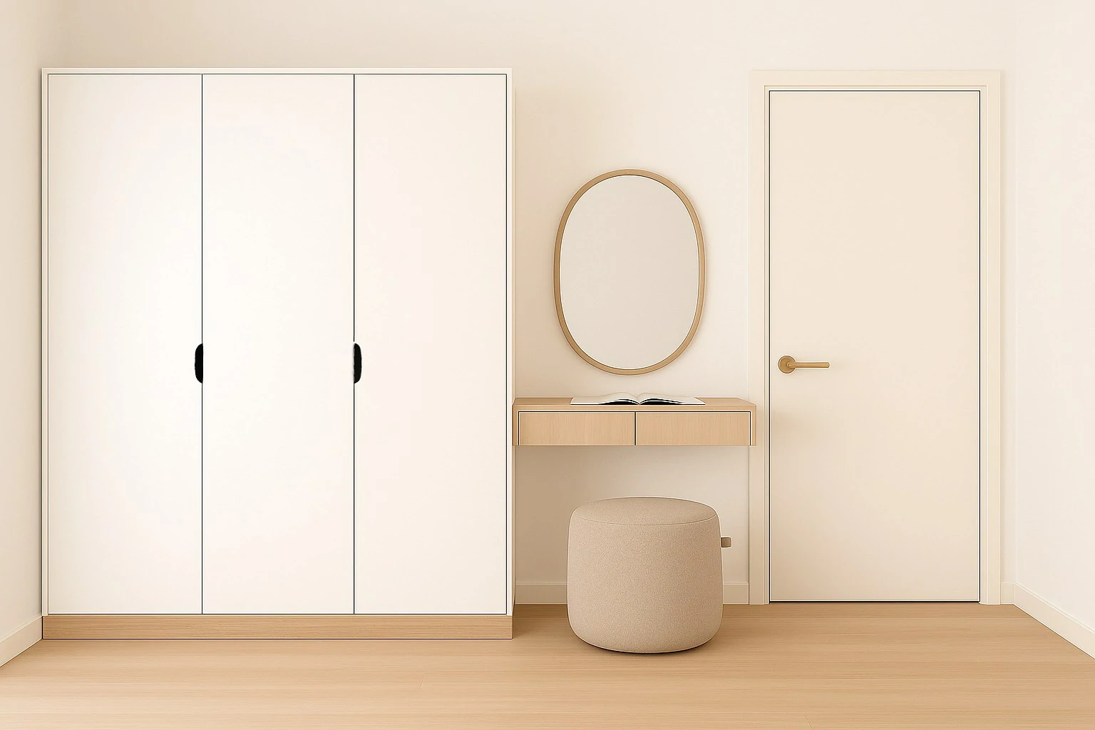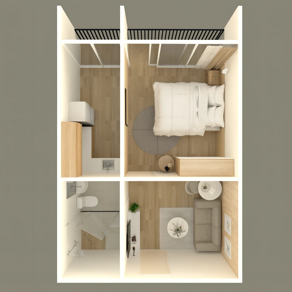 ห้องนอนสไตล์ Minimal ใช้โทนสีอ่อน เช่น ขาว ครีม เทาอ่อน เพื่อสร้างความรู้สึกสงบ เฟอร์นิเจอร์หลักมีเพียงเตียง ตู้เสื้อผ้า และโต๊ะข้างเตียงที่ออกแบบเรียบง่าย ไม่มีลวดลายมาก ตกแต่งเสริมด้วยผ้าม่านโปร่ง ผ้าปูที่นอนสีพื้น และไฟหัวเตียงนวล ๆ เพื่อให้ห้องเป็นพื้นที่พักผ่อนที่แท้จริง